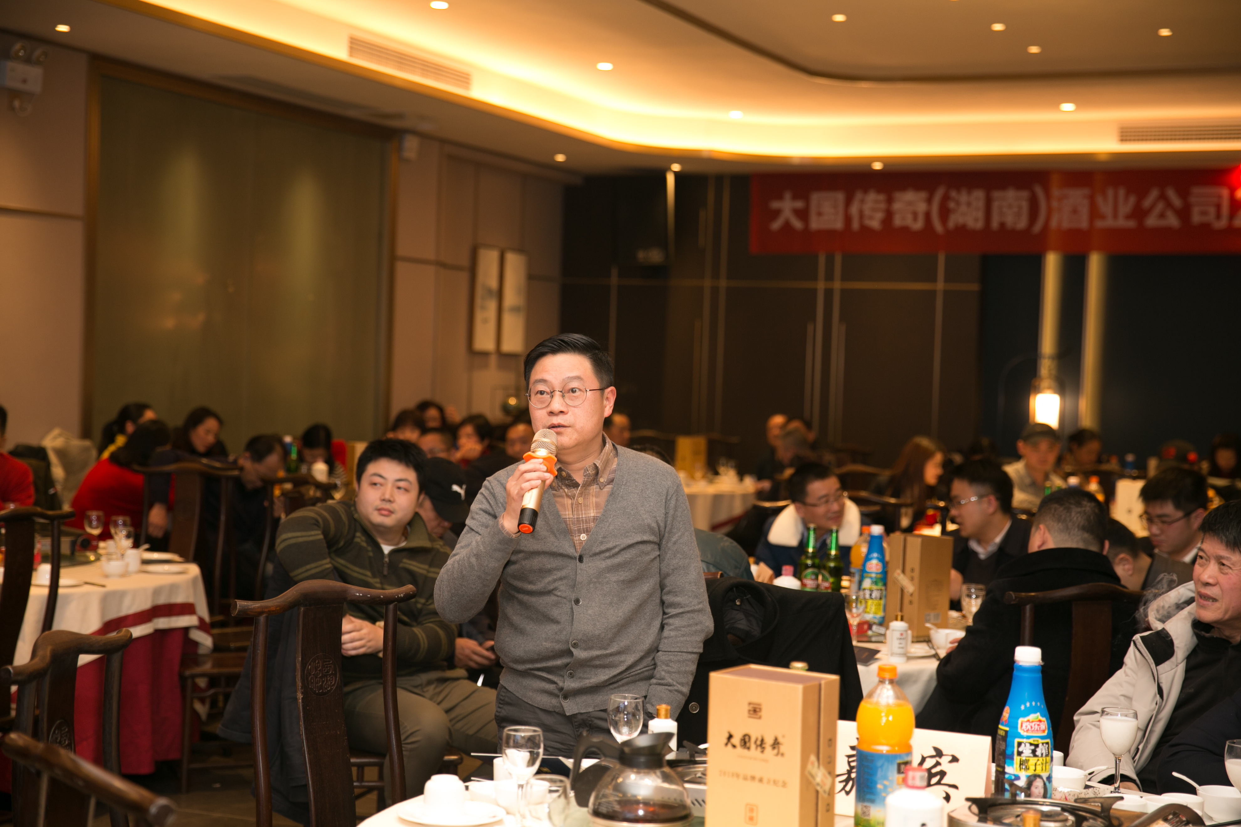 大國(guó)傳奇(湖南)酒業(yè)有限公司在王總的大力宣傳、推廣下,獲得了可喜的成績(jī),這離不開大家的支持和幫助,所以在這新春佳節(jié)到來之際,我們翻越高山,跨過大河,來到湖南長(zhǎng)沙答謝在座的各位朋友。現(xiàn)在我僅代表貴州大國(guó)傳奇酒業(yè)全體員工向前來參加年會(huì)的各位領(lǐng)導(dǎo)和嘉賓們表示衷心的感謝和熱烈的歡迎!